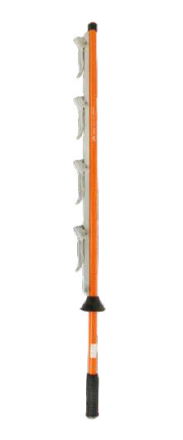 Bastão de aterramento para aplicação por método ao contato, dotado com punho e pingadeira de borracha acoplada.