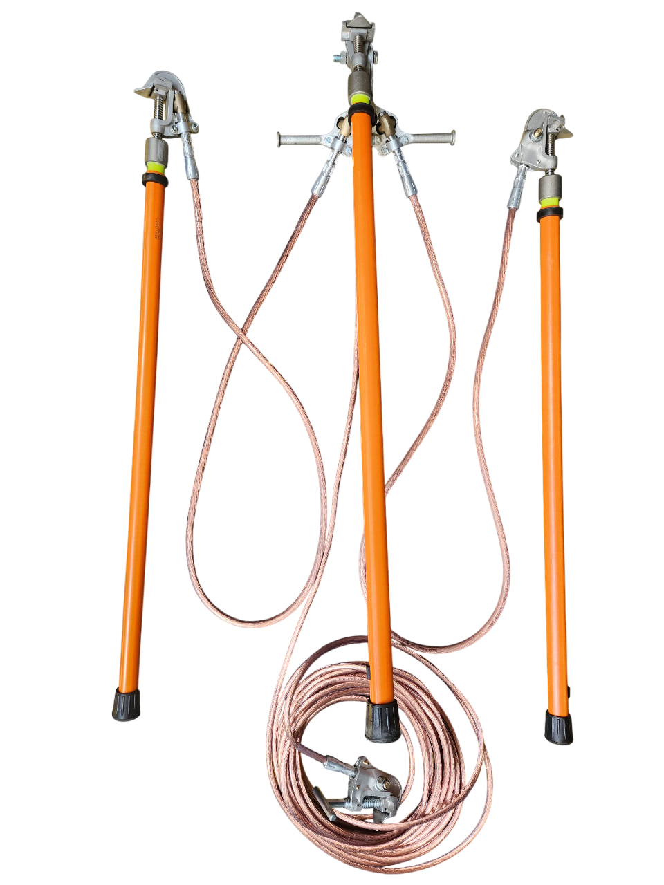 Conjunto de aterramento temporário com vara de manobra telescópica para rede de distribuição classe de tensão até 36kV, Capacidade máxima de curto-circuitamento: 30 ciclos: 8kA e 60 ciclos: 5 kA composto de:
