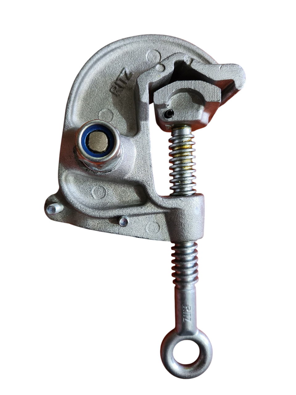 Grampo de aterramento olhal, Corpo em alumínio; mordente liso; parafuso de aperto tipo olhal, em bronze; conector dos cabos em bronze, para terminal liso. para barramentos verticais de 6 a 40 mm, horizontais 16 a 40 mm e circulares de Ø 6 a 35 mm. Peso Aprox. 0,65 Kg.