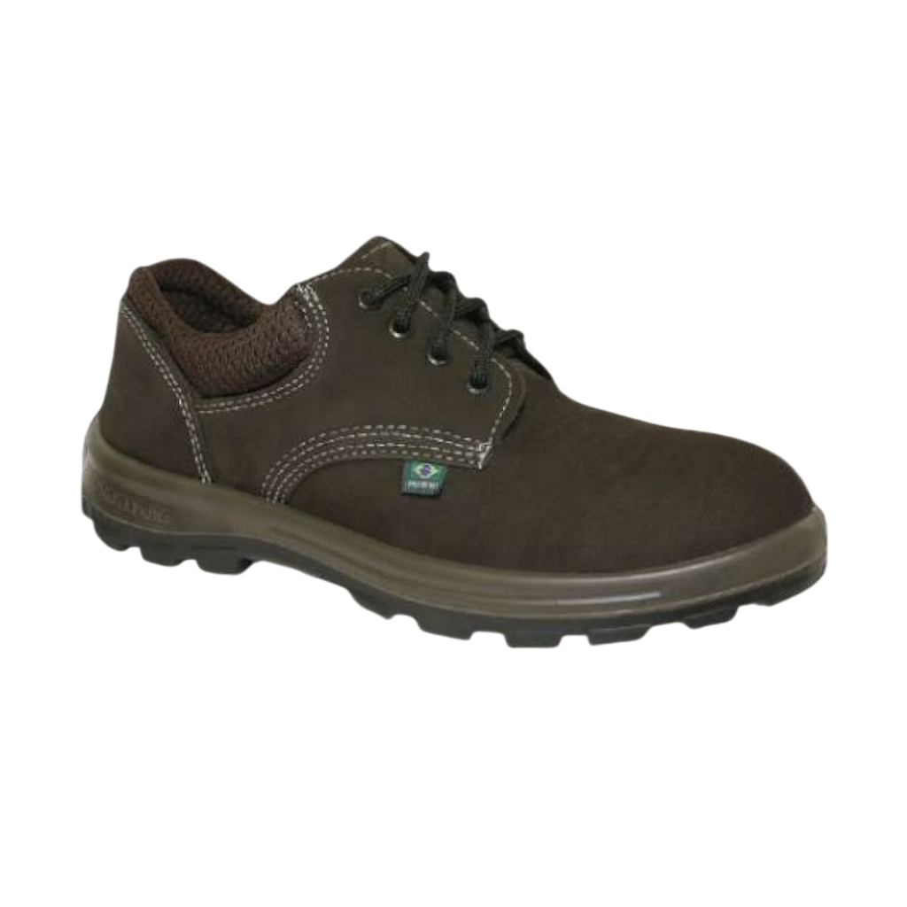 Sapato de cadarço com colarinho almofadado em couro nobuck curtido ao cromo café, 100% forrado com solado Bi Densidade biqueira termoplástica. C.A: 42465
